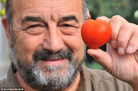 Ông Rod Matless là người đã trồng và thu hoạch được quả cà chua hình trái tim tuyệt đẹp.