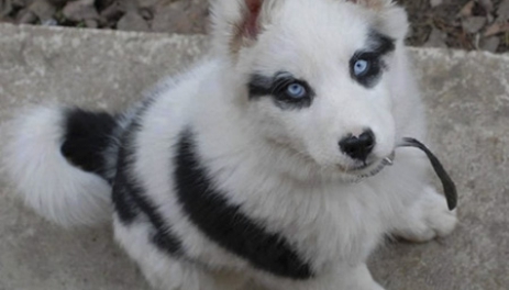Chú chó với bộ lông như của gấu trúc.