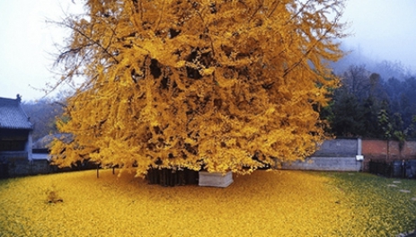 Cây được xem như là “hóa thạch sống” bởi nó đã sống được 1.400 tuổi. Mỗi mùa lá bạch quả rụng thì hàng triệu du khách lại từ khắp nơi đổ về để được chiêm ngưỡng.
