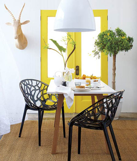 Sơn cửa màu vàng tươi tạo ấn tượng mạnh khi mới bước chân vào phòng. Căn phòng vẫn giữ tông trắng làm màu chủ đạo nhưng vẫn đủ sức thu hút và như mang thêm nhiều ánh nắng chan hòa của mùa hè vào phòng khi sơn cửa màu nắng.