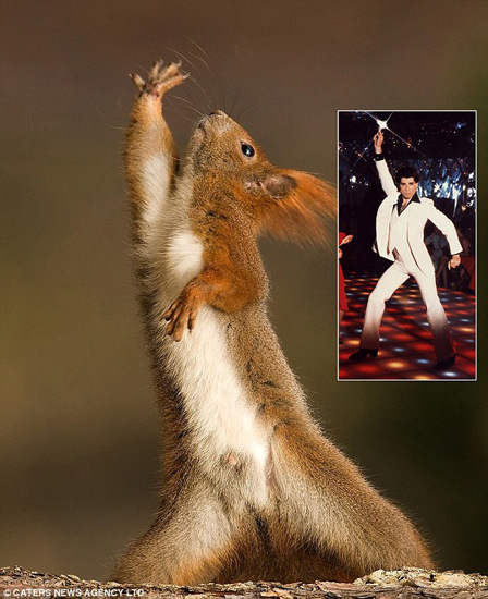 Chú sóc đỏ này đang thực hiện động tác như nghệ sỹ John Travolta