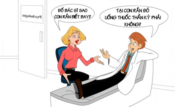 - Vì con ếch đó đã ăn một viên thuốc thần kỳ. – bệnh nhân hỏi tiếp – Thế bác sĩ biết sao con rắn bay được không?