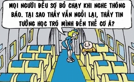 Người duy nhất ngồi lại trên máy bay một cách bình tĩnh chính là vị giáo viên. Tiếp viên tò mò, tiến đến hỏi: