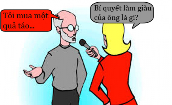 - Tôi mua một quả táo, tôi dùng cả ngày để lau chùi nó cho thật bóng loáng, vào cuối ngày tôi bán được với giá 10 xu. Hôm sau, tôi lại mua tiếp 2 quả táo, và lại lau chùi và bán chúng vào cuối ngày với giá 20 xu.