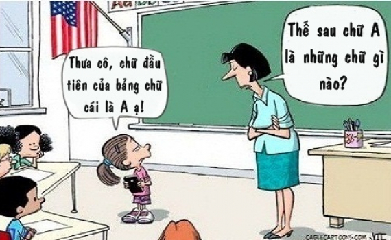 - Vậy em hãy nói sau chữ A là chữ gì? - cô giáo hỏi tiếp.