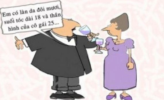 - Chồng yêu, em hỏi câu này anh phải trả lời thật lòng nhé! Trông em khoảng bao nhiêu tuổi?