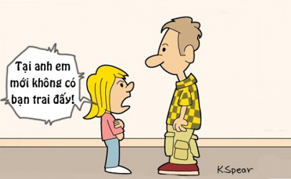 - Vậy là do anh hai của con thôi, đừng có đổ lỗi cho bố không cho con đi chơi với bạn trai nhé!