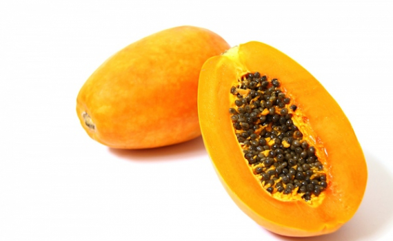 Cậu bé cẩn thận lấy đu đủ cho bà ăn
