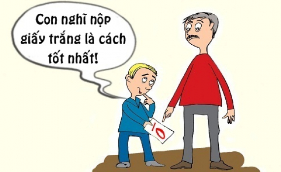 - Tồ, sao con nộp giấy trắng để ăn điểm 0 thế này?