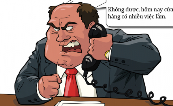 - Chỗ của tôi hiện tại mưa ngập hết rồi ông chủ ạ, giờ không có cách nào đi làm được. Ông cho tôi xin nghỉ phép hôm nay nhé!