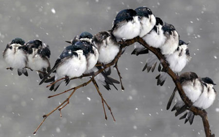 Đàn chim đậu trên cành cây trong một trận bão tuyết tại bang New York, Mỹ.