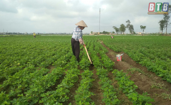 Nông dân Vũ Thư chăm sóc lạc xuân