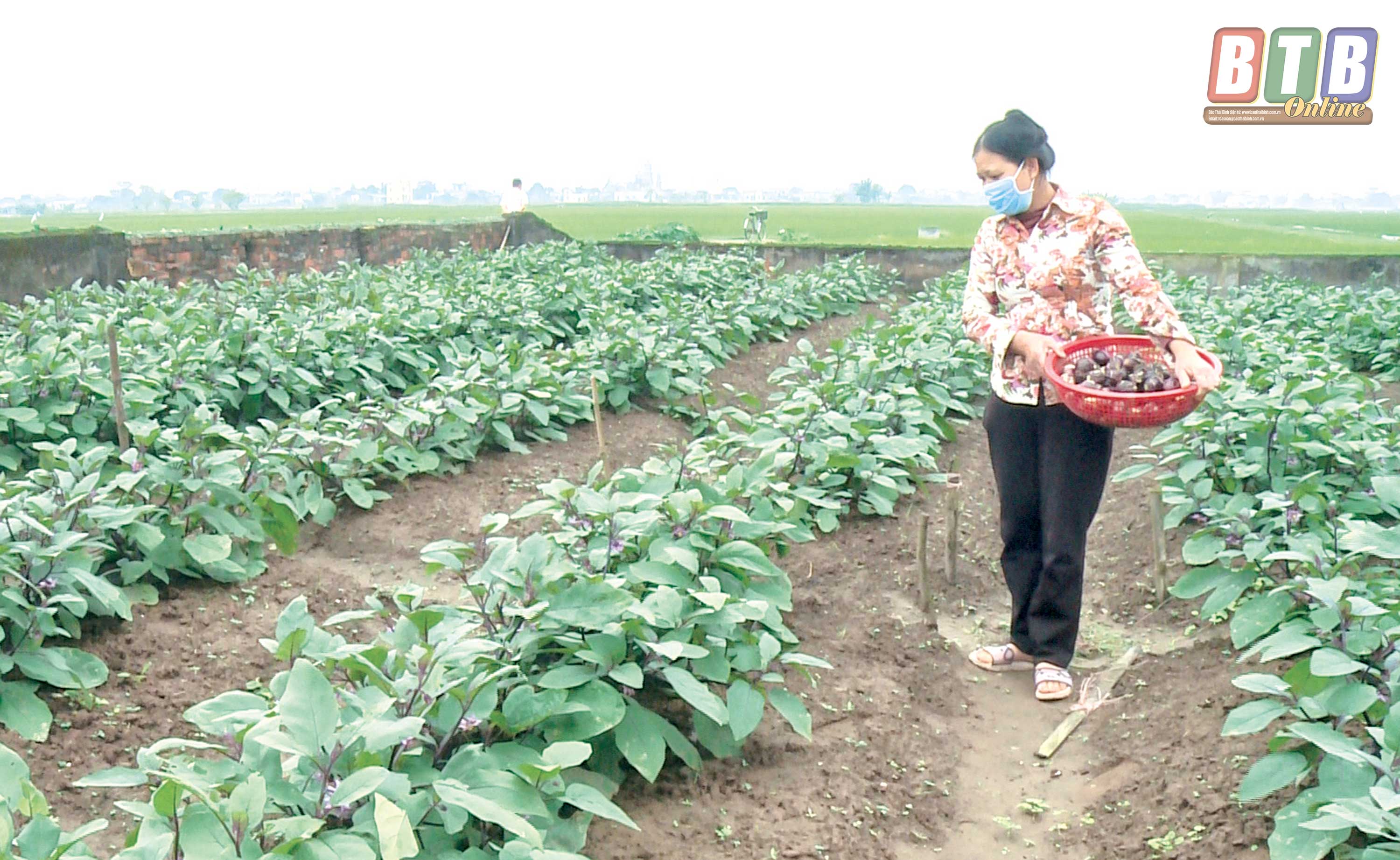 Cũng như gia đình bà Gái, bà Đào Thị Vui, thôn Tân Hưng 1, xã Nam Thắng cũng dành hơn 1 sào ruộng xen kẹp giữa khu dân cư của gia đình để trồng cà tím. Theo bà Vui: Cà tím sinh trưởng tốt và dễ trồng, năng suất bình quân đạt từ 800 đến 1.000kg/sào/vụ. Công chăm sóc ít, năng suất cao, lại được công ty thu mua sản phẩm ngay tại vườn nên khi tham gia sản xuất, chúng tôi vừa tận dụng được diện tích vườn lại vừa có thu nhập ổn định.