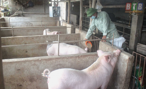 Ông Túy cho biết: Hiện gia trại mới khôi phục được đàn lợn gồm 6 con nái và 29 con lợn thịt. Để bảo vệ sức khỏe đàn lợn, tôi áp dụng quy trình chăn nuôi an toàn sinh học. Các vấn đề về thức ăn chăn nuôi, tiêm vắc-xin phòng bệnh, đặc biệt là vệ sinh, tiêu độc, khử trùng chuồng trại, cải tạo môi trường chăn nuôi luôn được quan tâm hàng đầu.