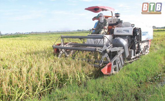 Thu hoạch lúa xuân tại xã An Châu (Đông Hưng).