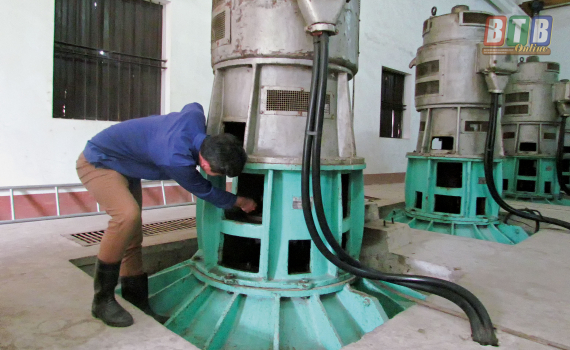 Nhân viên trạm bơm Minh Tân (Hưng Hà) bảo dưỡng máy móc sẵn sàng vận hành chống ngập úng.