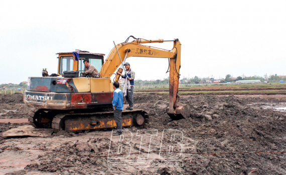 Hộ nuôi trồng thủy sản xã Thái Thượng gia cố, tôn cao bờ ao nuôi thủy sản.