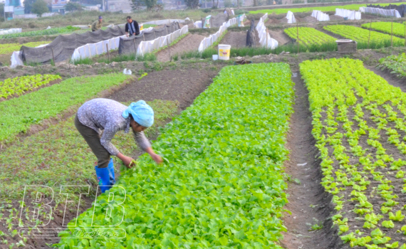 Nông dân xã Vũ Phúc chăm sóc rau màu.