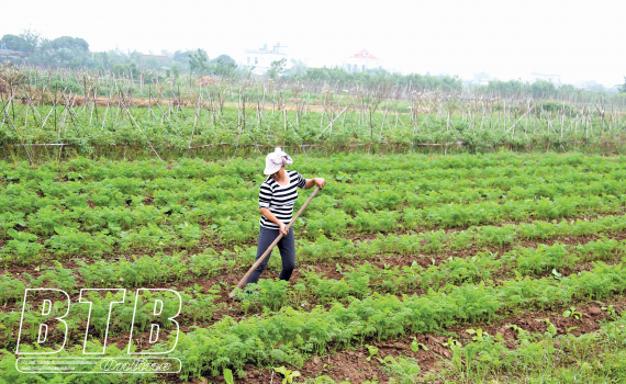 Nông dân xã Đông Xuyên (Tiền Hải) chăm sóc cà rốt.
