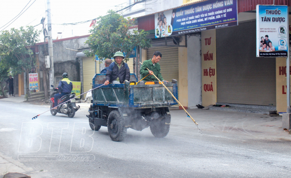 Xã Việt Hùng (Vũ Thư) tổ chức phun thuốc tiêu độc, khử trùng hàng ngày để phòng, chống dịch bệnh.