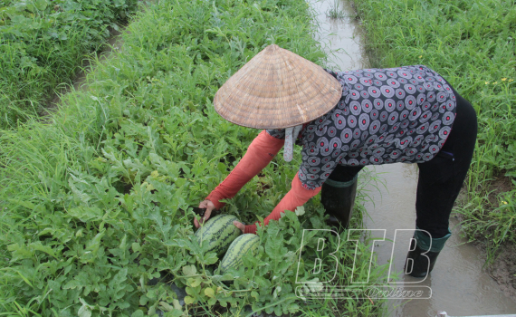 Nông dân xã Nguyên Xá (Đông Hưng) thu hoạch dưa.