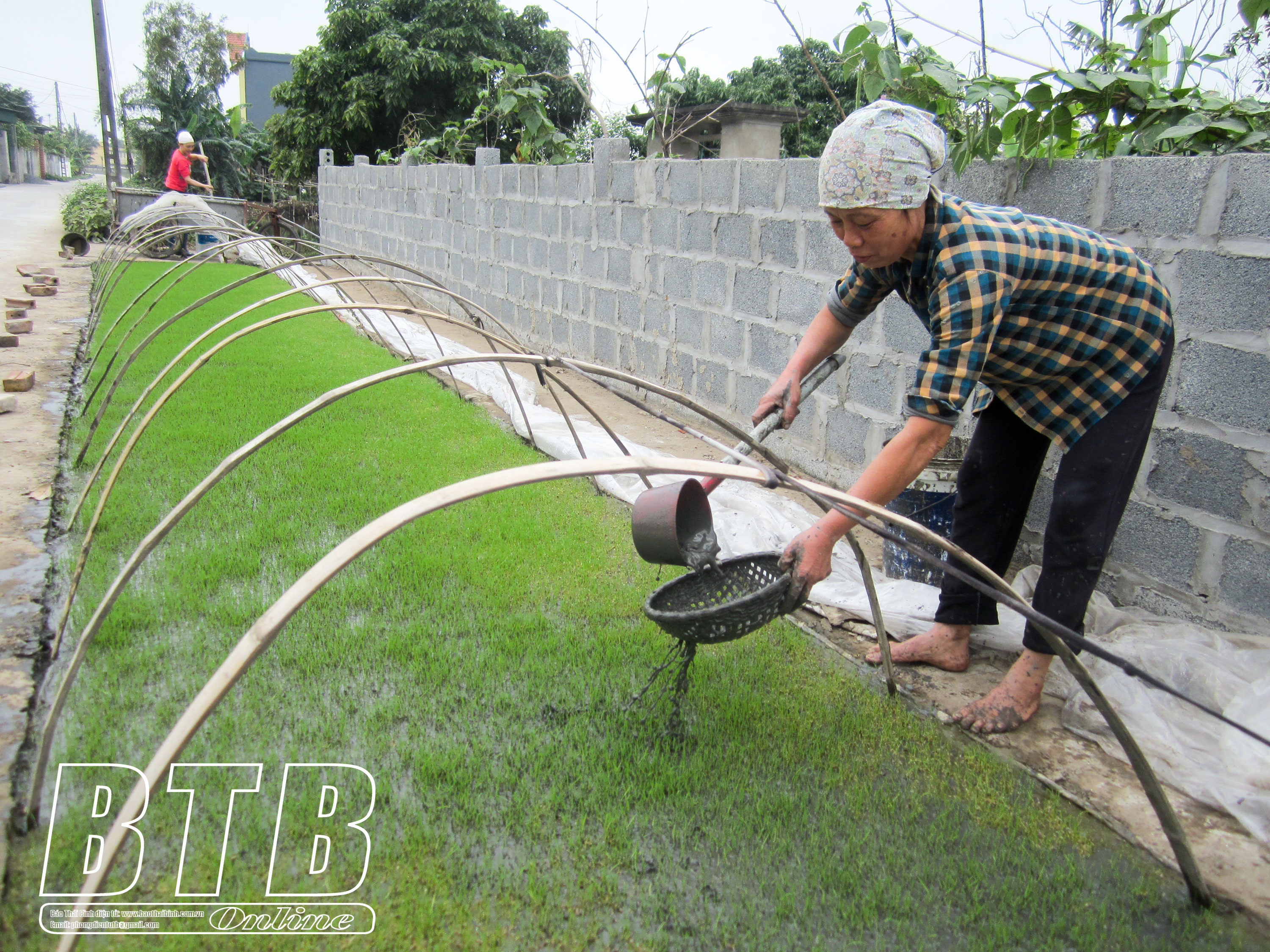 Nông dân xã Song An (Vũ Thư) chăm sóc mạ vụ xuân.