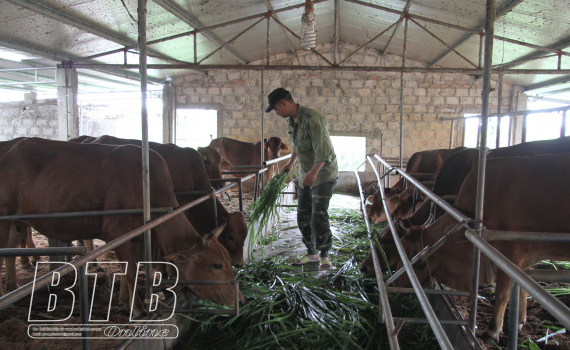 Chăn nuôi bò theo mô hình ứng dụng chế phẩm sinh học trong xử lý môi trường tại thôn Lộng Khê, xã An Khê (Quỳnh Phụ).