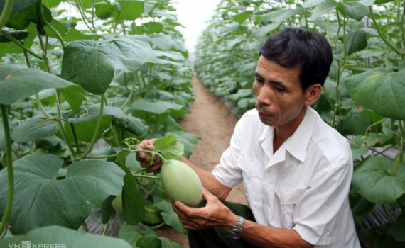 Trồng dưa lưới trong nhà kính ở Nhơn Trạch, Đồng Nai. Ảnh: Phước Tuấn.