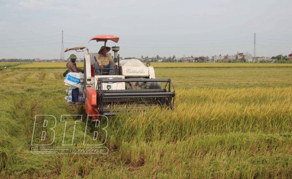 Nông dân Tiền Hải tập trung thu hoạch lúa xuân chuẩn bị sản xuất vụ mùa.