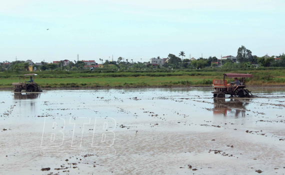 Bà con nông dân Quỳnh Phụ đang tích cực làm đất gieo cấy bảo đảm thời vụ.