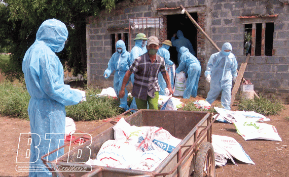 Kiến Xương tổ chức tiêu hủy toàn bộ số gia cầm của hộ ông Nguyễn Văn Chiến theo đúng quy định.