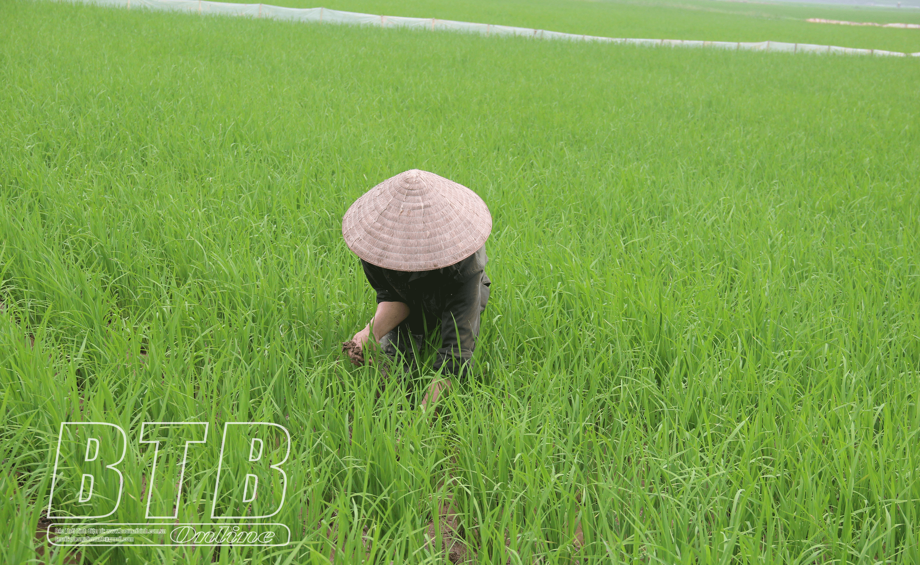 Nông dân xã Bình Định (Kiến Xương) chăm sóc lúa mùa.