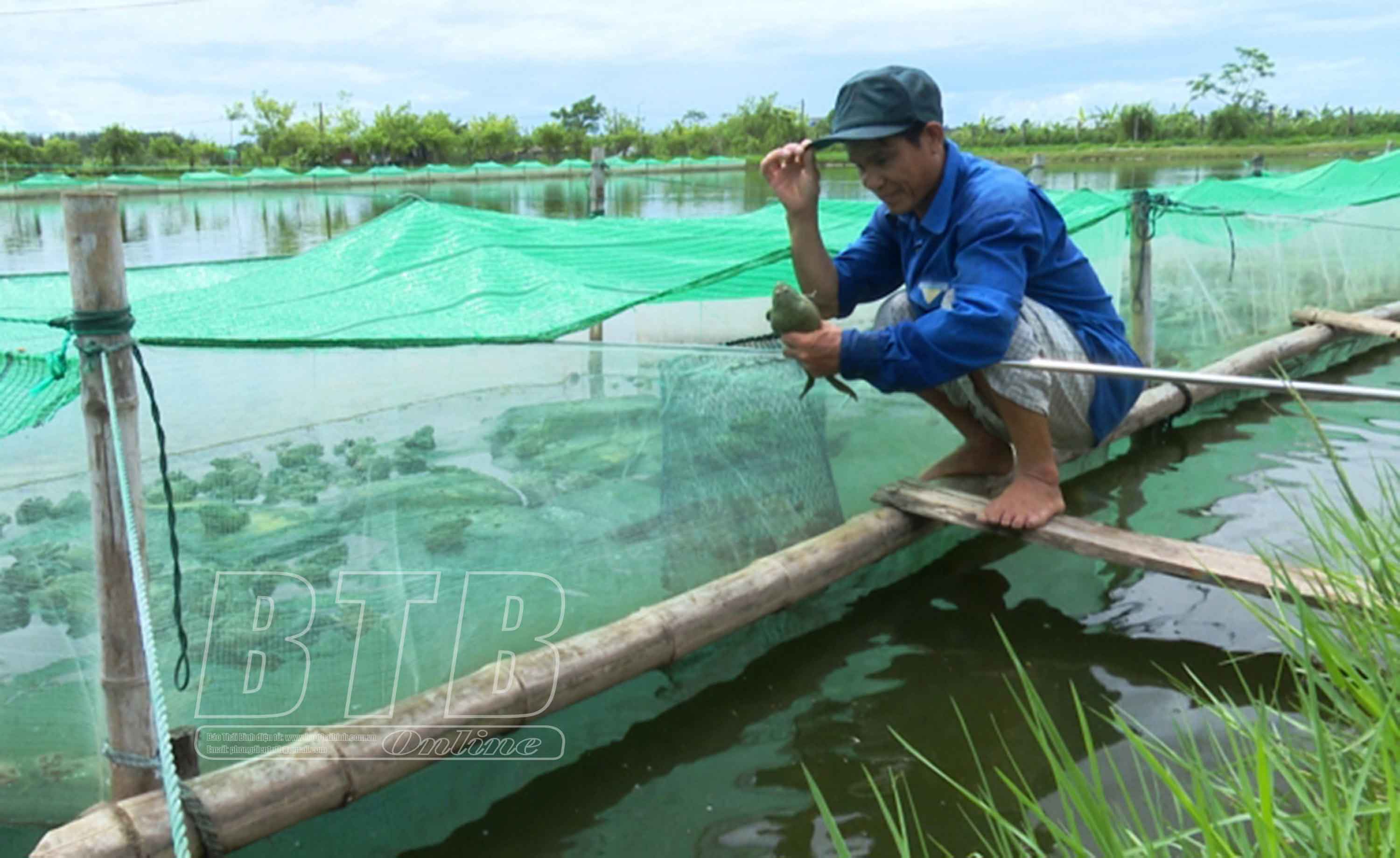 Mô hình nuôi ếch xen cá của anh Đặng Văn Giáp, xã Đông Hoàng (Tiền Hải) cho giá trị kinh tế cao.