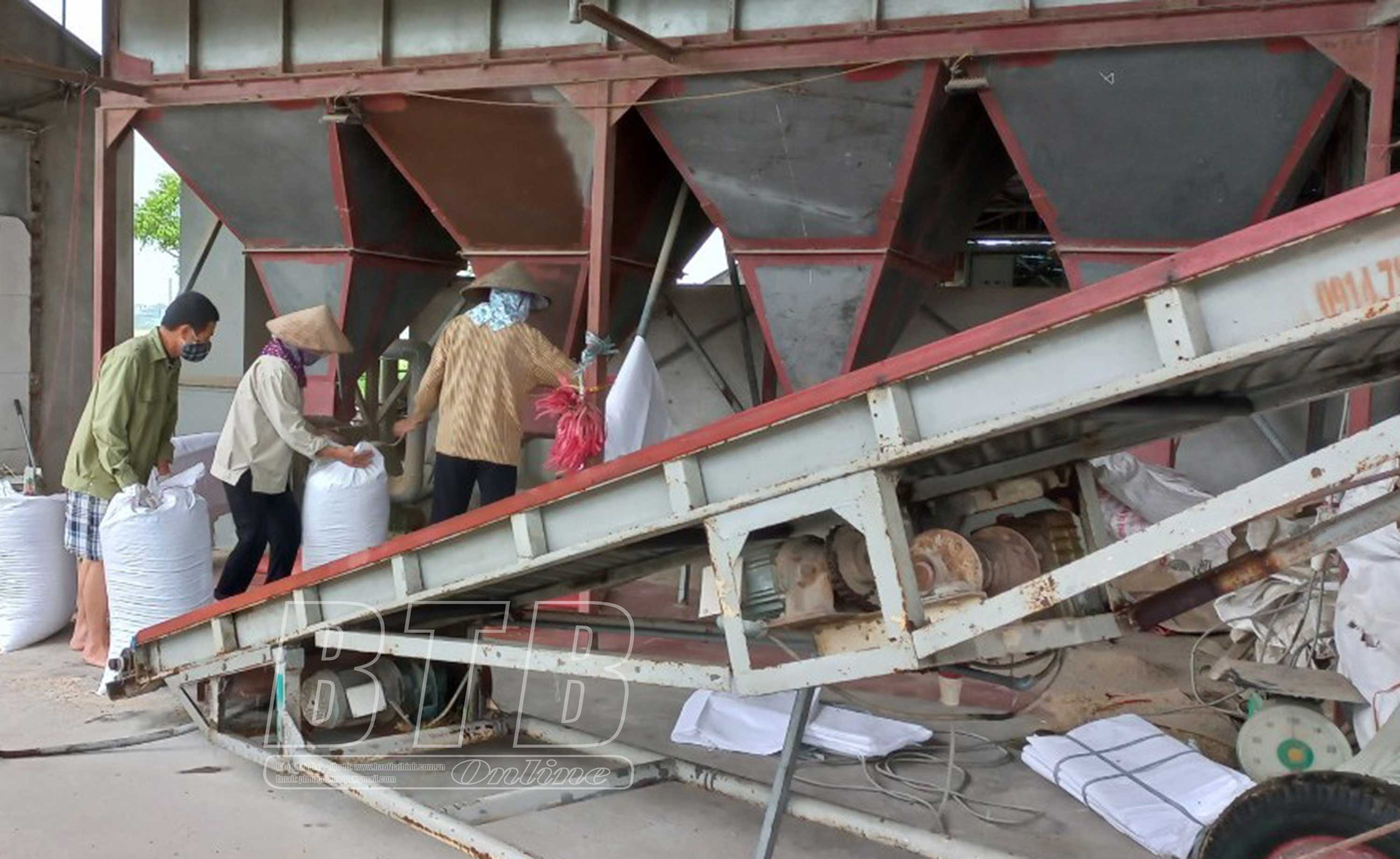 HTX thương mại dịch vụ và kinh doanh lúa gạo Bình Thanh (Kiến Xương) ưu tiên sấy lúa cho người dân nhằm giảm tổn thất sau thu hoạch do mưa lớn.