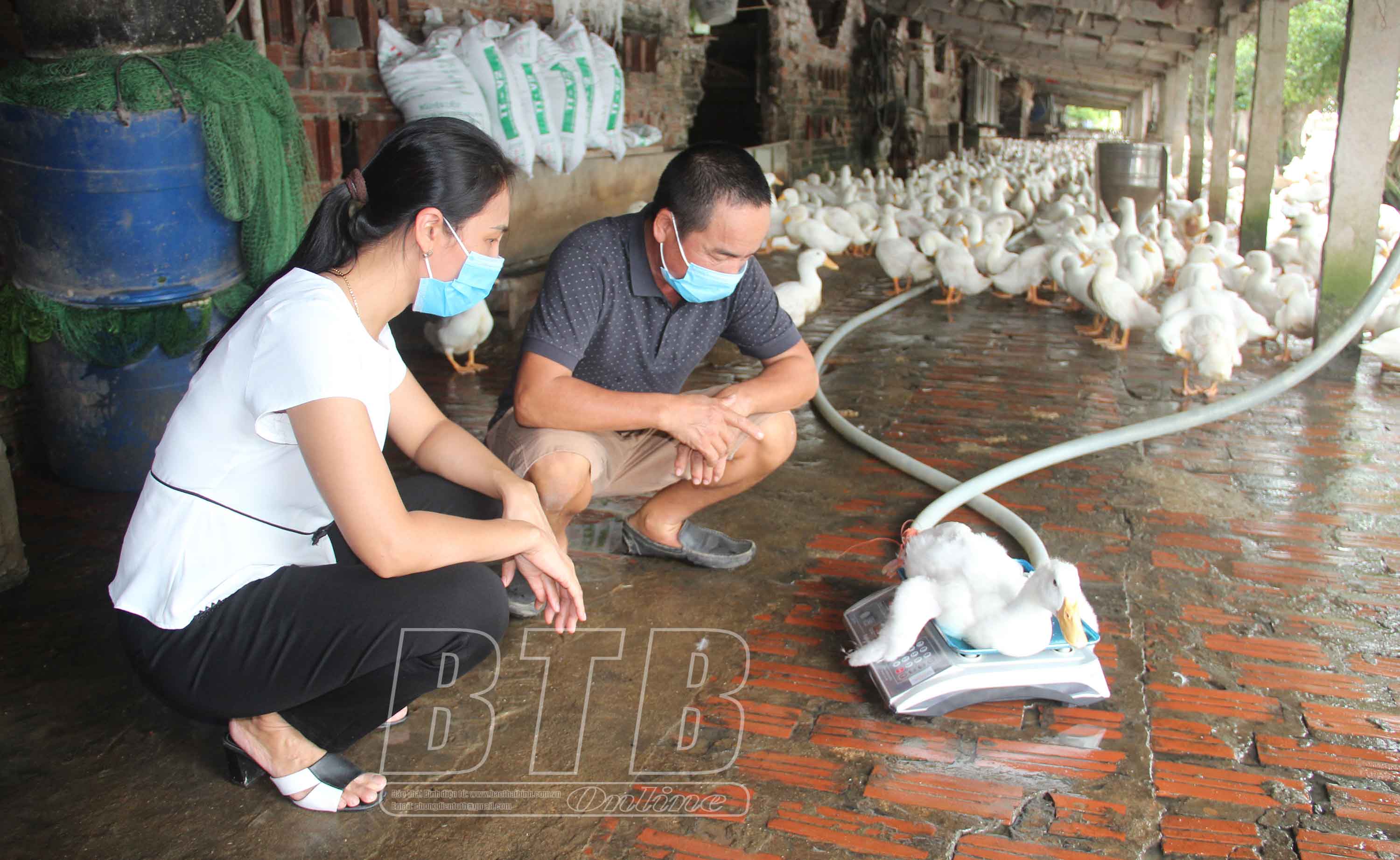 Xuất phát từ thực tiễn trên, năm 2021 Chi cục Chăn nuôi và Thú y thực hiện mô hình khuyến nông “Xây dựng mô hình chăn nuôi vịt thịt thương phẩm giống cao sản SHST53 an toàn sinh học theo chuỗi liên kết” với quy mô 10.800 con, 4 hộ tham gia tại 2 huyện Thái Thụy, Tiền Hải; trong đó, người chăn nuôi được hỗ trợ 50% con giống, 12,5% nhu cầu về thức ăn giai đoạn 29 ngày đến xuất chuồng, 50% nhu cầu vắc-xin thiết yếu. Trước khi đưa vịt về nuôi, các hộ được tập huấn kỹ thuật làm chuồng, vệ sinh phòng bệnh; nuôi với phương thức bán chăn thả, khoanh vùng khu vực nuôi, không nuôi chung với các đối tượng nuôi khác trong cùng khu vực nuôi, định kỳ thu gom rác thải, quét dọn sạch sẽ và rắc vôi bột khử trùng...