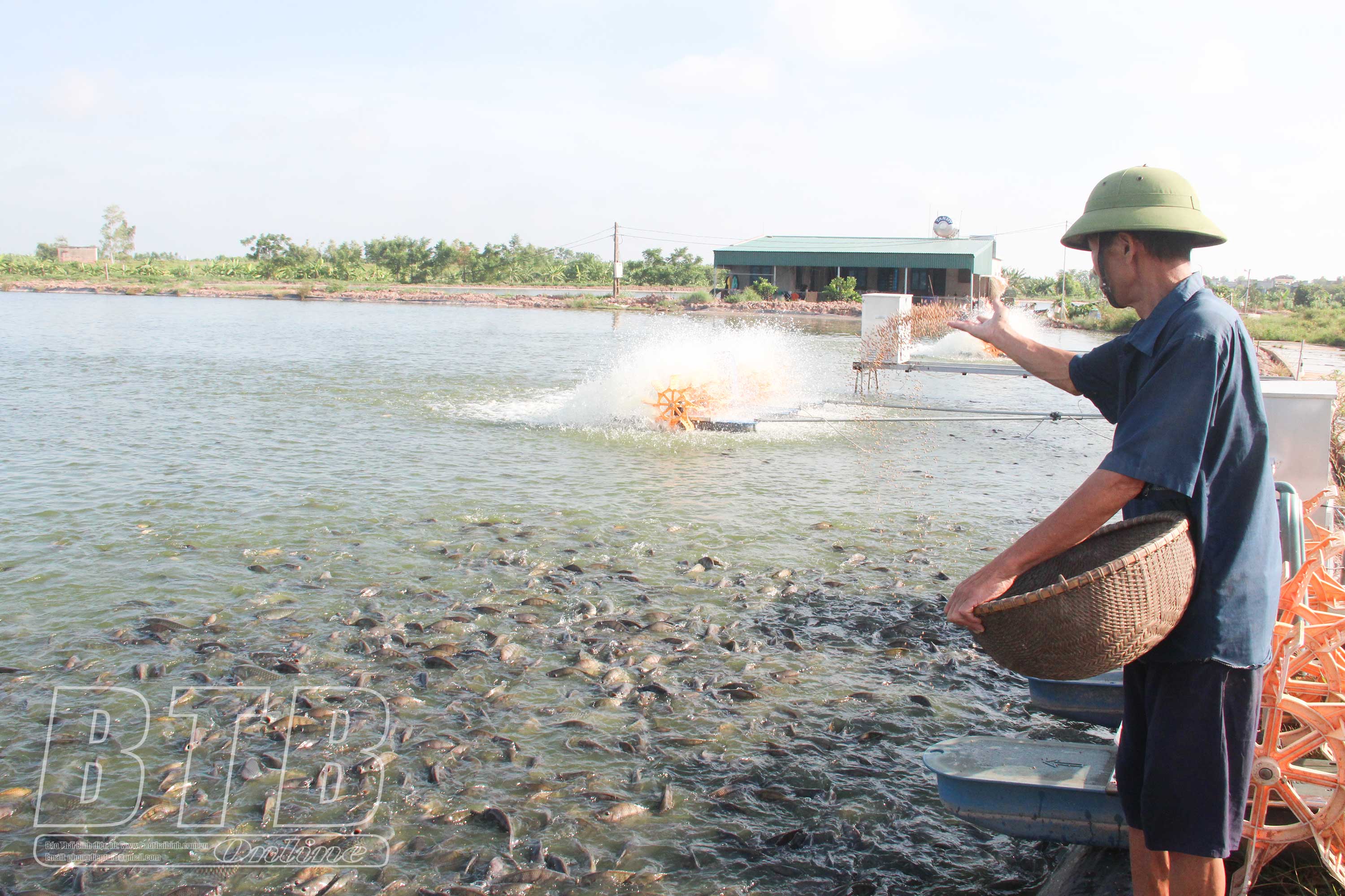 Mô hình nuôi cá trên ao bán nổi của anh Lại Văn Hòa, xã Tân Hòa (Vũ Thư) cho hiệu quả kinh tế cao