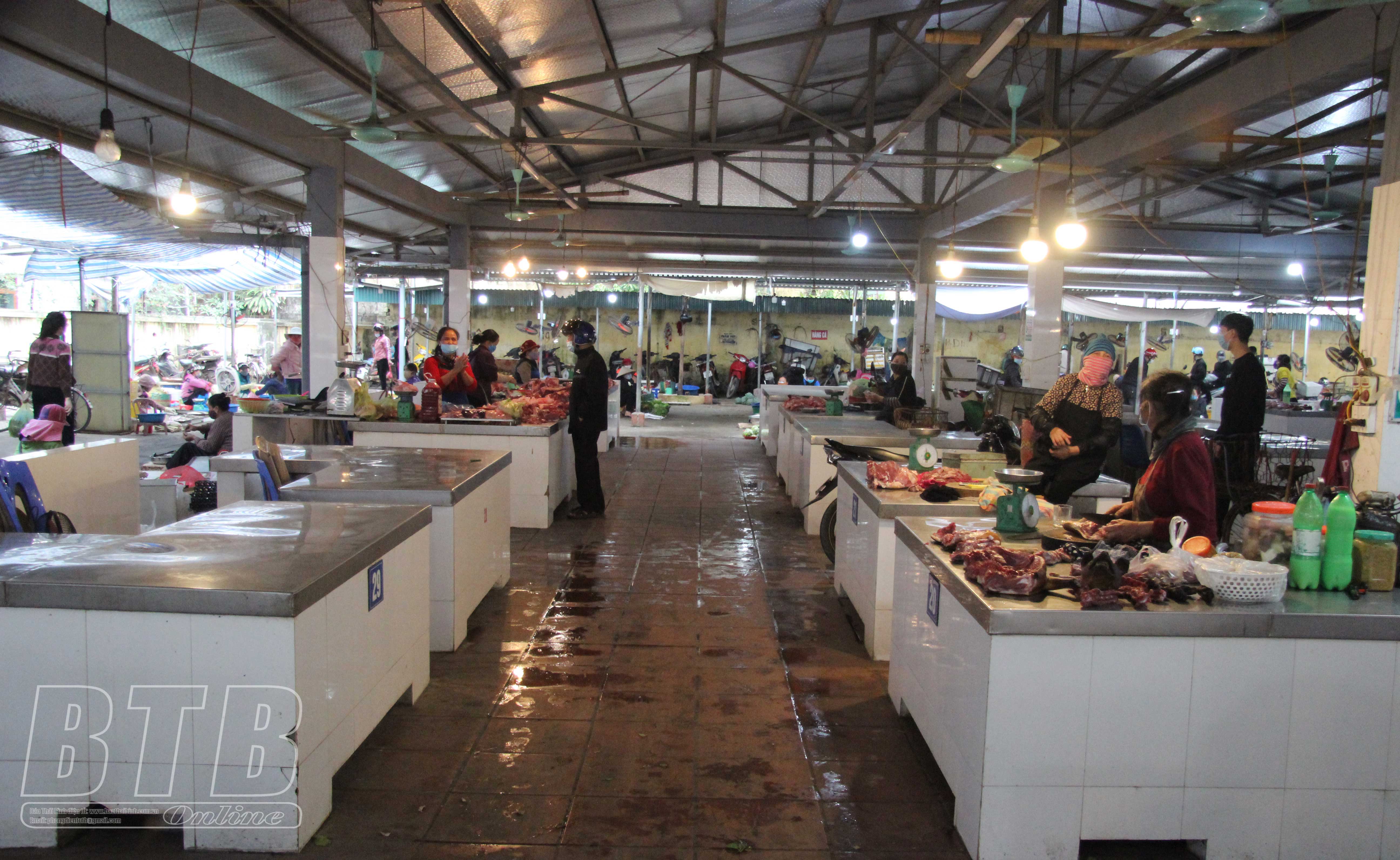 Các điểm chợ trên địa bàn huyện Tiền Hải đều thực hiện vệ sinh tiêu độc khử trùng.