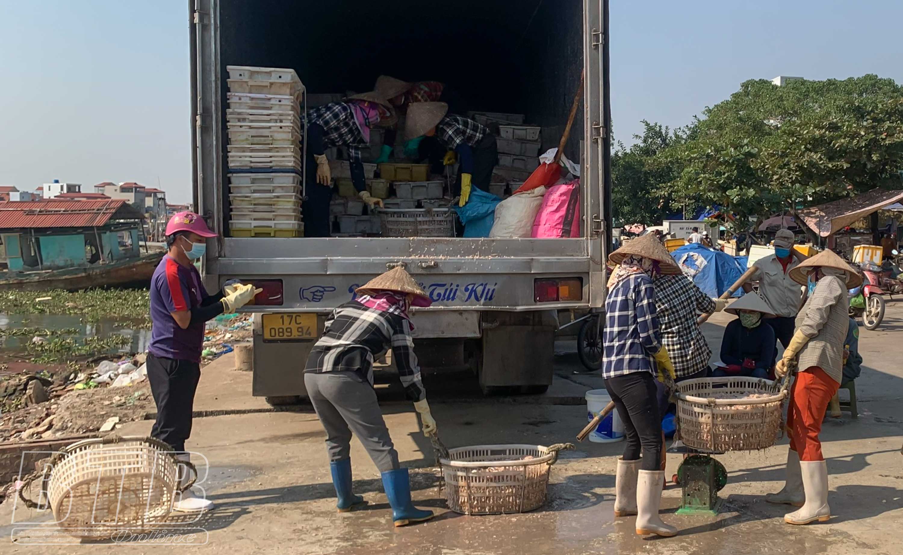 Thu mua thủy sản tại bến cá Vĩnh Trà (thị trấn Diêm Điền).