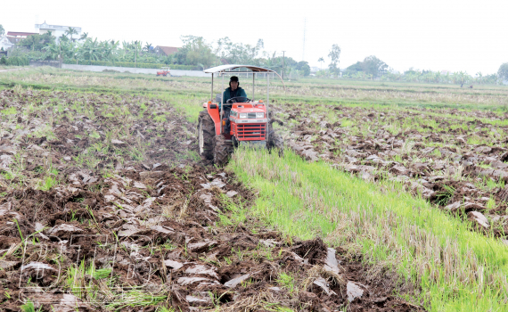 Nông dân huyện Tiền Hải tập trung ra đồng cày lật đất bảo đảm thời vụ sản xuất vụ xuân.
