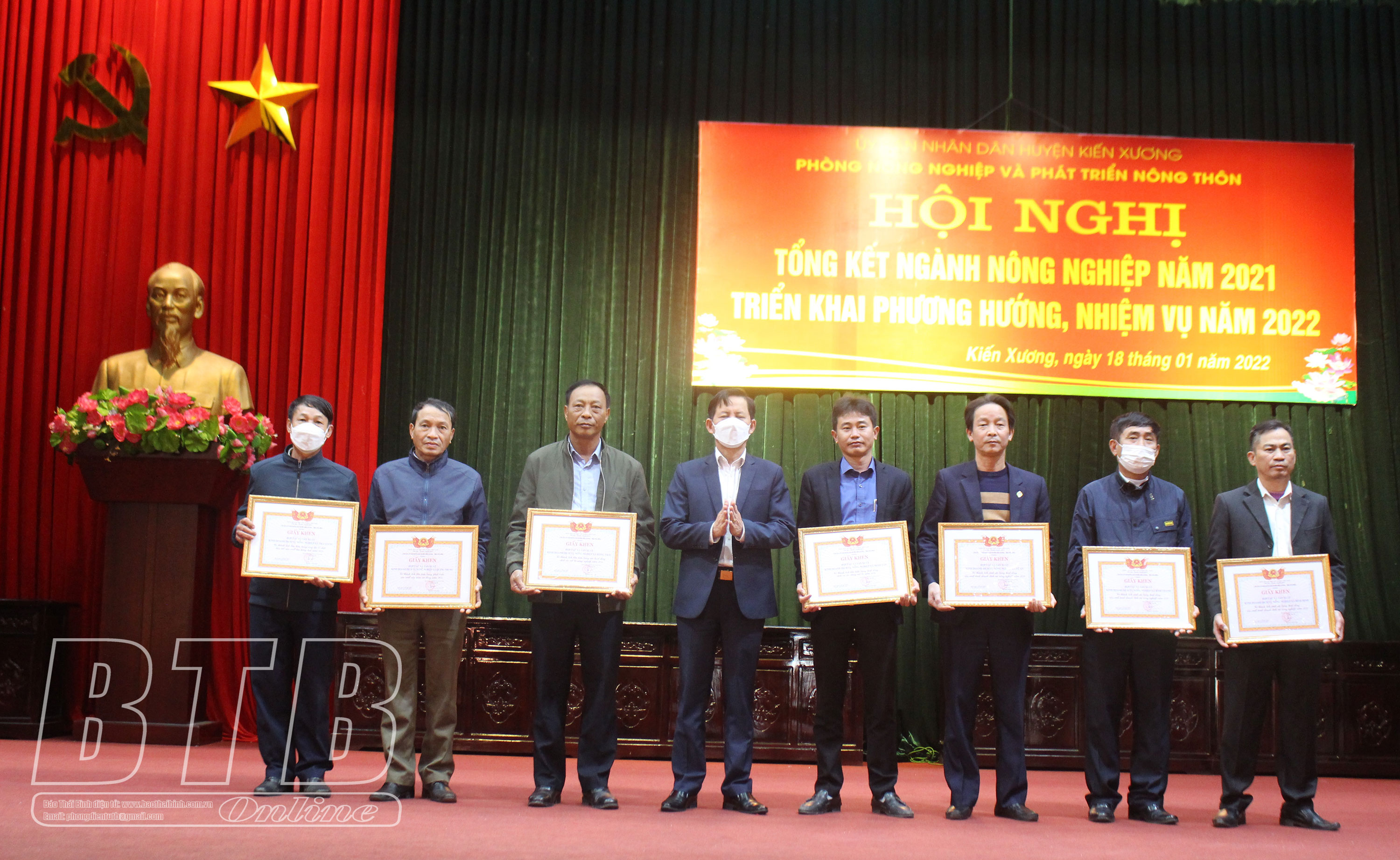 Lãnh đạo UBND huyện Kiến Xương khen thưởng các tập thể, cá nhân có thành tích xuất sắc trong hoạt động sản xuất nông nghiệp và phát triển nông thôn năm 2021.