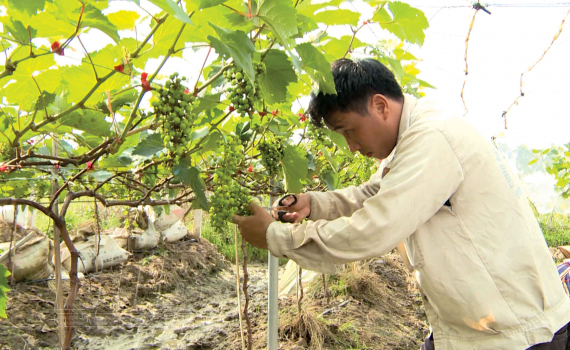 Anh Nguyễn Bá Duẩn, thôn Đồng Phúc, xã An Lễ (Quỳnh Phụ) chăm sóc nho hạ đen.