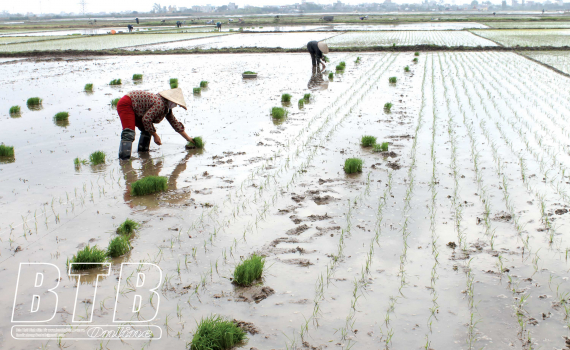 Nông dân xã Song Lãng (Vũ Thư) tập trung gieo cấy lúa xuân nhằm bảo đảm khung thời vụ tốt nhất.