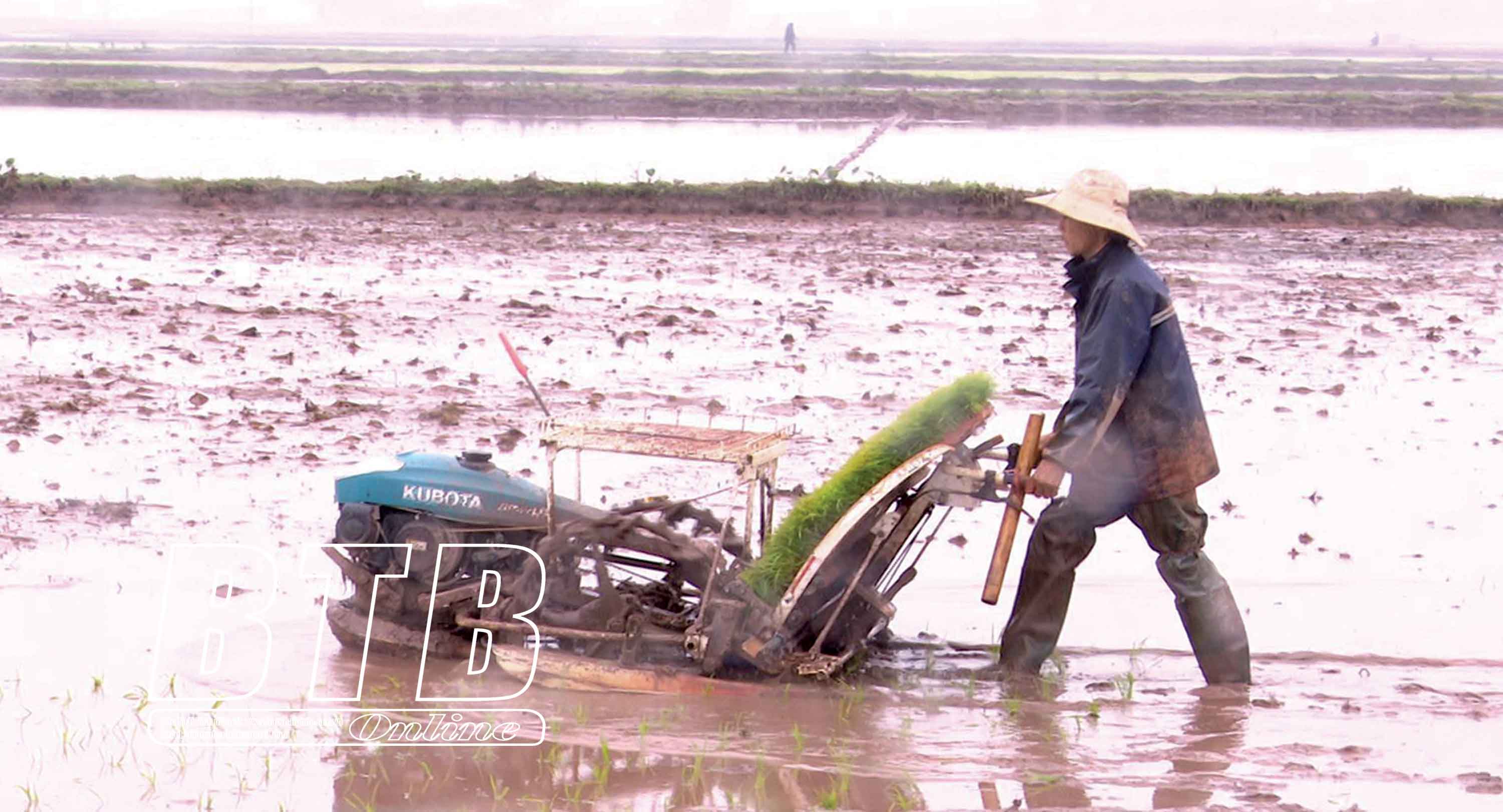 Toàn huyện Kiến Xương có gần 80 máy cấy cầm tay đã xuống đồng.