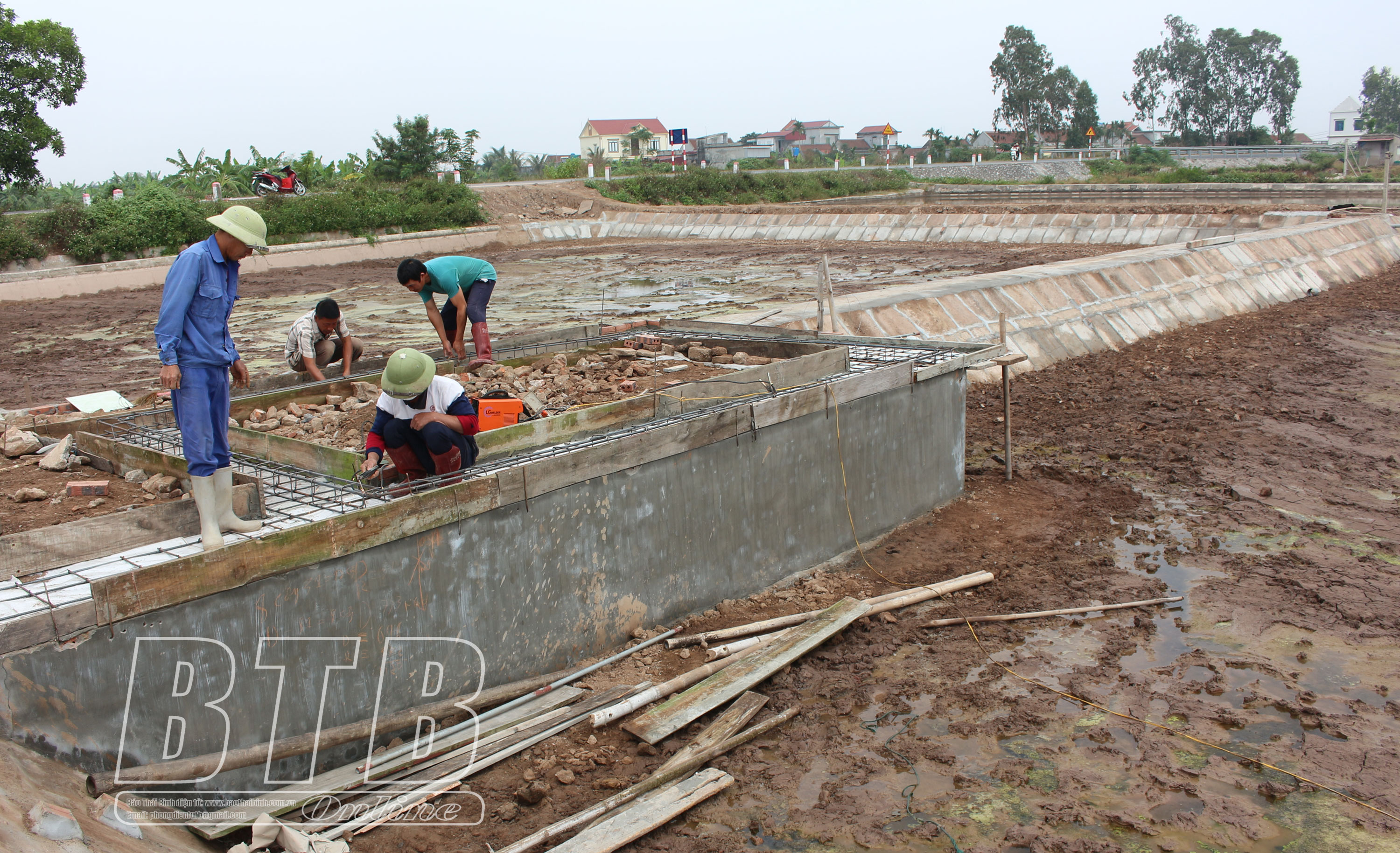 Hộ NTTS xã Thụy Hải xây dựng ao nuôi chuẩn bị nuôi thả vụ mới.