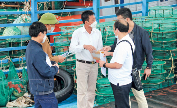 Cán bộ Chi cục Thủy sản tuyên truyền Luật Thủy sản cho ngư dân.