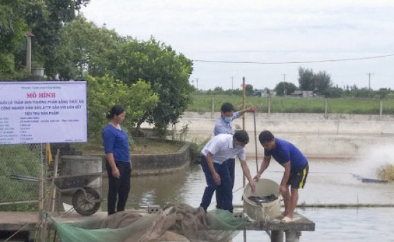 - Quản lý môi trường ao nuôi: Ao nuôi được vệ sinh thường xuyên. Sử dụng chế phẩm vi sinh để xử lý ao nuôi. Định kỳ mỗi tháng dùng 2 lần (liều lượng theo hướng dẫn của nhà sản xuất và tần suất dùng tùy thuộc điều kiện cụ thể trong từng ao nuôi). Chế phẩm vi sinh vật có tác dụng di chuyển khí độc, phân giải mùn đáy ao, hạn chế sự phát triển các vi sinh gây bệnh và giữ môi trường nuôi ổn định.
