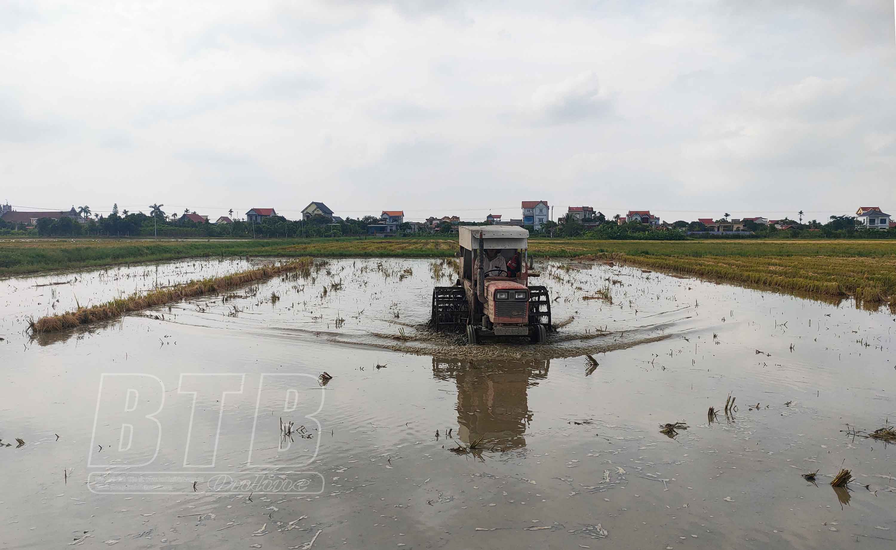 Xã Đồng Tiến (Quỳnh Phụ) làm đất gieo cấy lúa mùa.