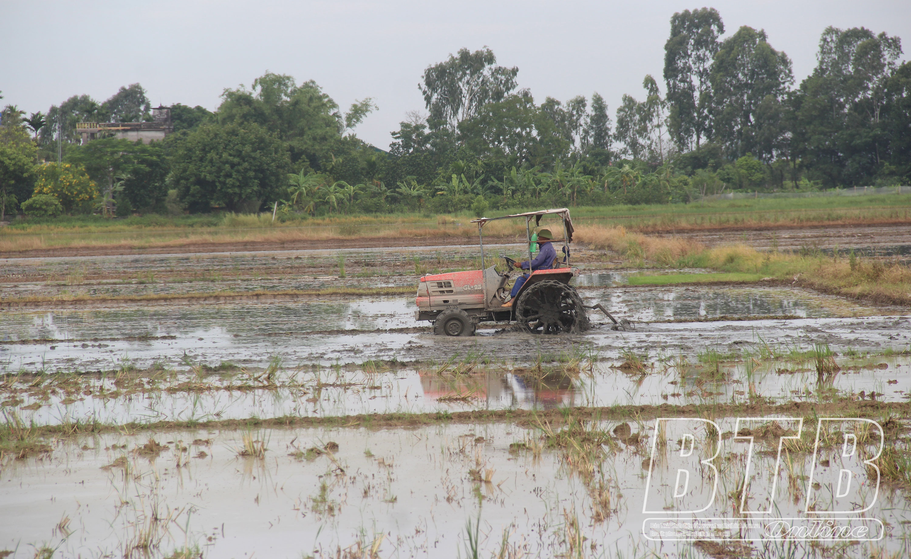 Ông Nguyễn Thành Đồng, Trưởng phòng Nông nghiệp và Phát triển nông thôn huyện Thái Thụy cho biết: Do lúa xuân năm nay thu hoạch muộn hơn so với cùng kỳ năm trước, áp lực về thời vụ càng trở nên gấp gáp hơn. Khắc phục điều này, đồng thời để bảo đảm kế hoạch về diện tích, lịch thời vụ, cơ cấu giống, trước khi bước vào vụ sản xuất, ngành nông nghiệp và các địa phương đã chỉ đạo nông dân thu hoạch lúa đến đâu tập trung phương tiện làm đất ngay đến đó, tiến hành làm đất, gieo mạ, hướng dẫn các biện pháp kỹ thuật, hỗ trợ giống, vật tư, phân bón cho nông dân gieo cấy lúa mùa, đồng thời tích cực chuẩn bị các phương án phòng, chống úng.