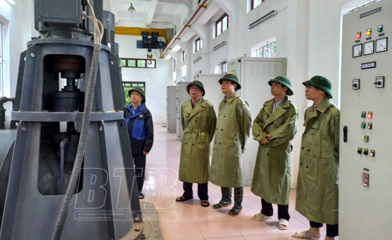 Lãnh đạo Sở Nông nghiệp và Phát triển nông thôn kiểm tra công tác tiêu úng tại Trạm bơm Tịnh Xuyên (Hưng Hà).
