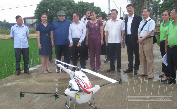 Trình diễn thiết bị phun thuốc trừ sâu không người lái tại Viện Nghiên cứu cây trồng, Công ty Cổ phần Tập đoàn ThaiBinh Seed (ảnh minh họa).